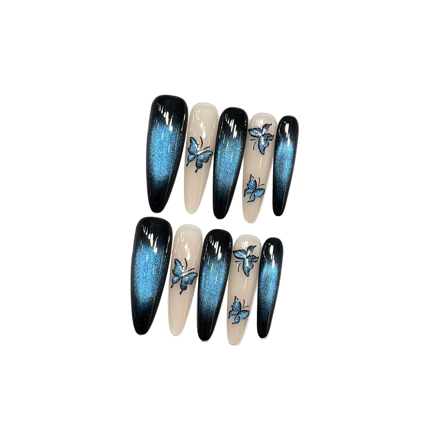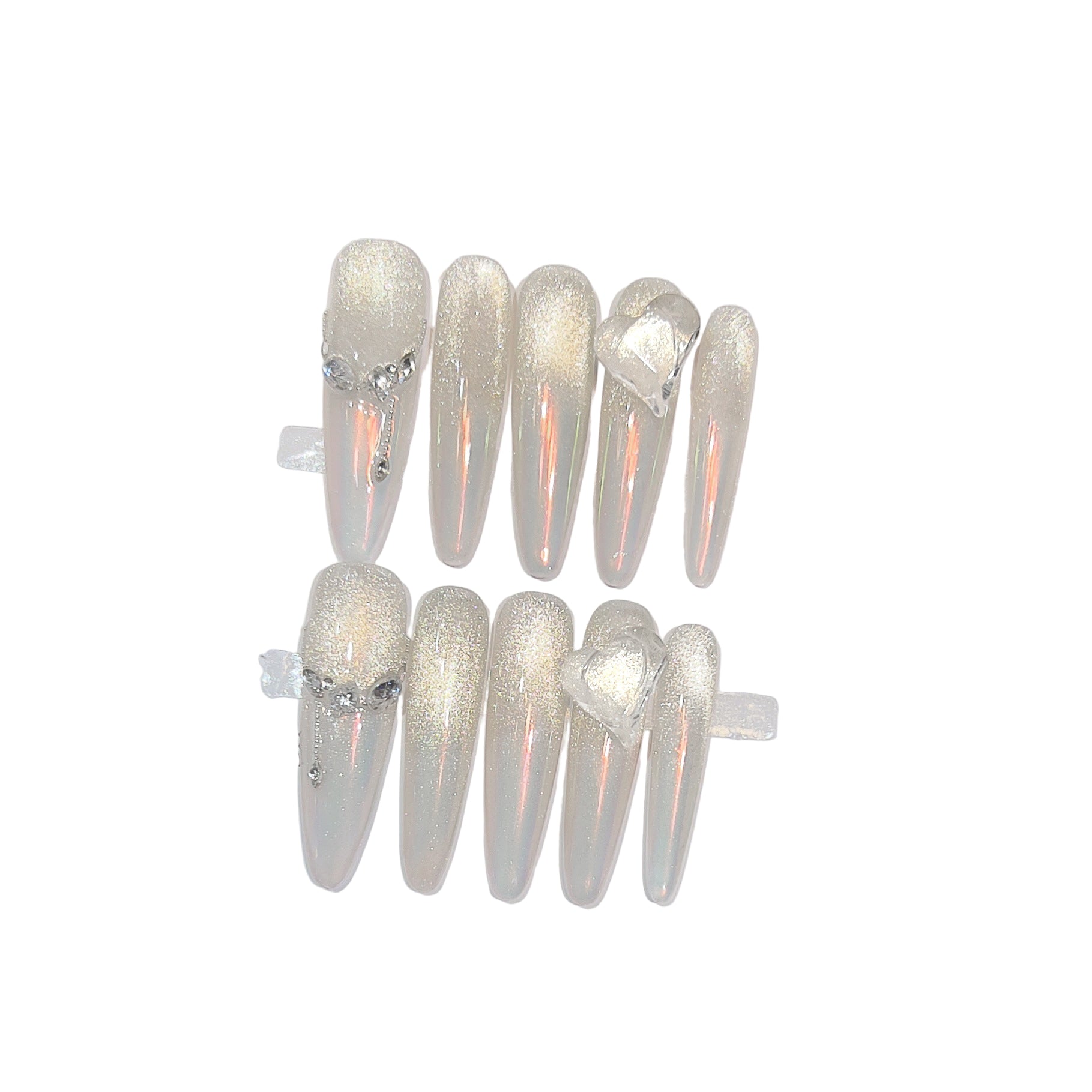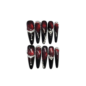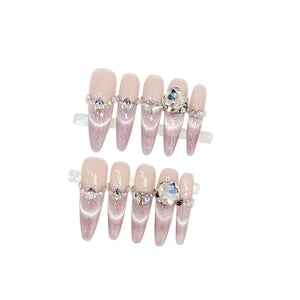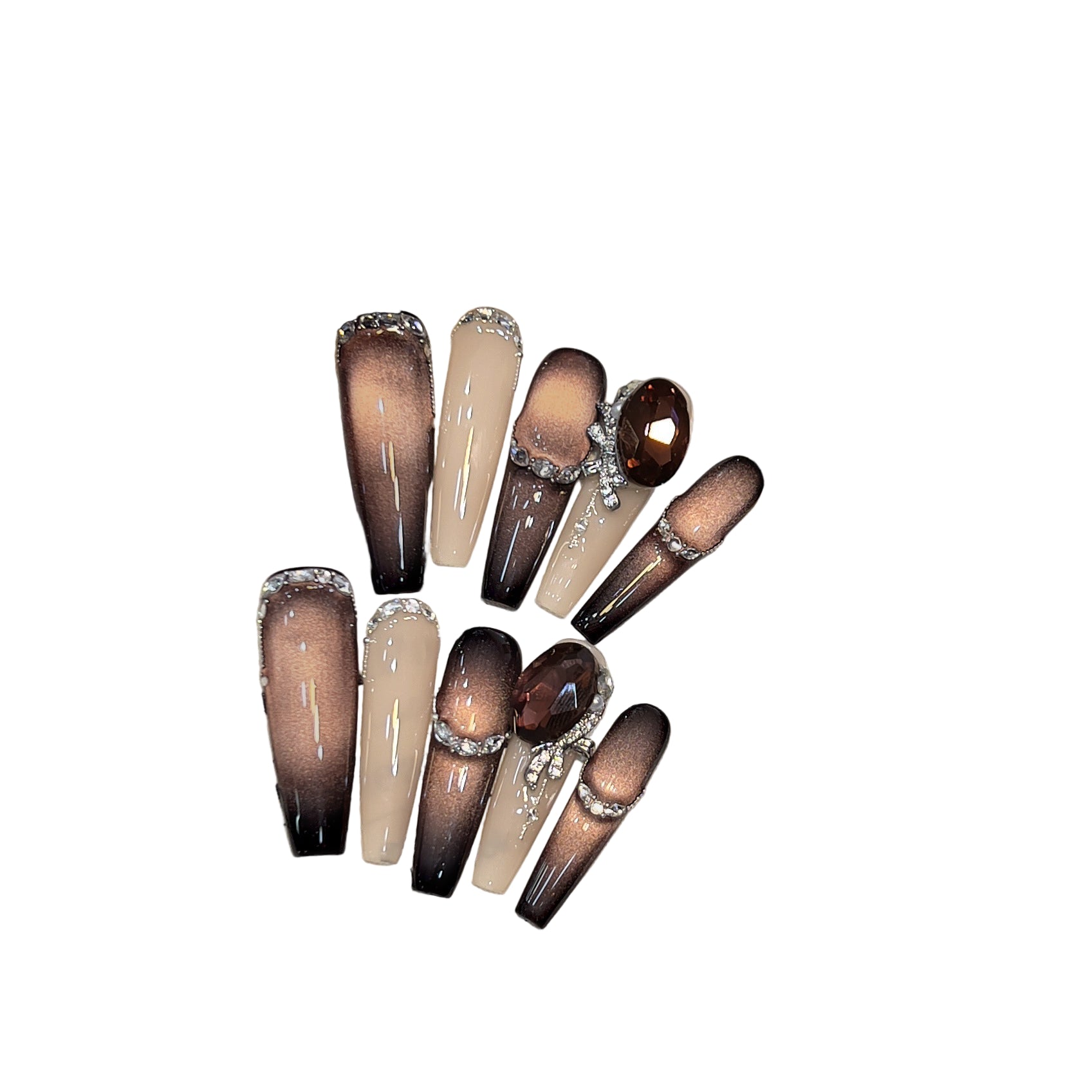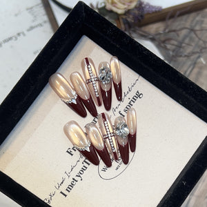 Long Slim Cat Magnetic Red Guava Brown Nude Aurora Handmade Press On Nails With Nail Gems Detachable False Nail