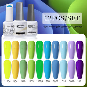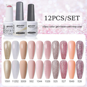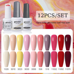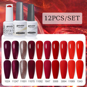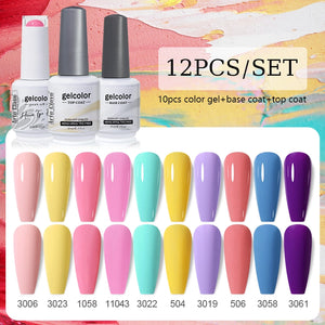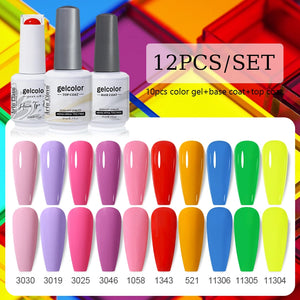 10pcs Color Gel Nail Polish +1pcs Base Coat+1pcs Top Coat - 15ml(12B-ACZBZH25~~ACZBZH50)