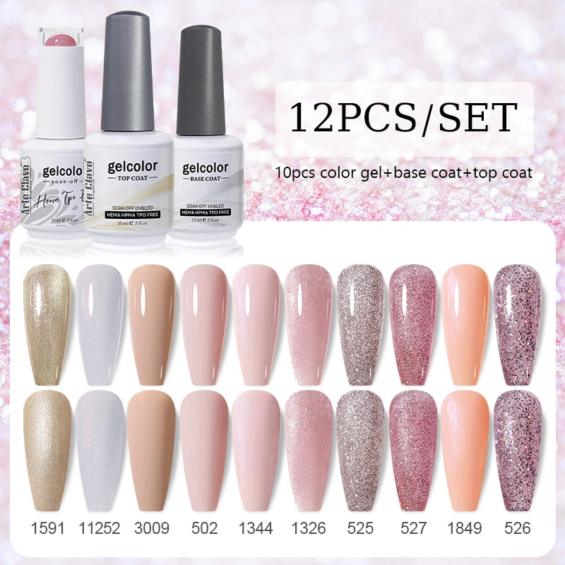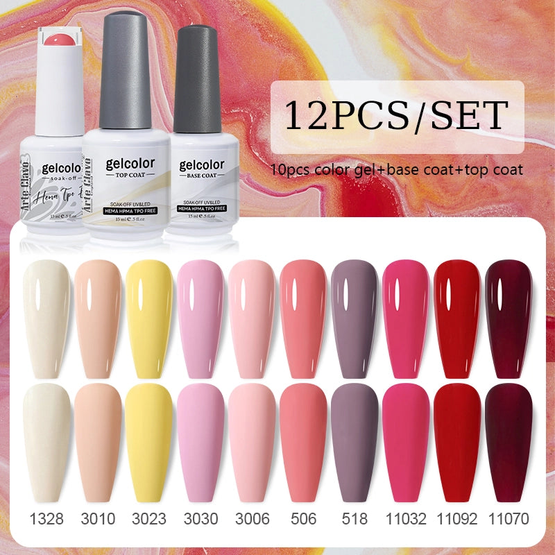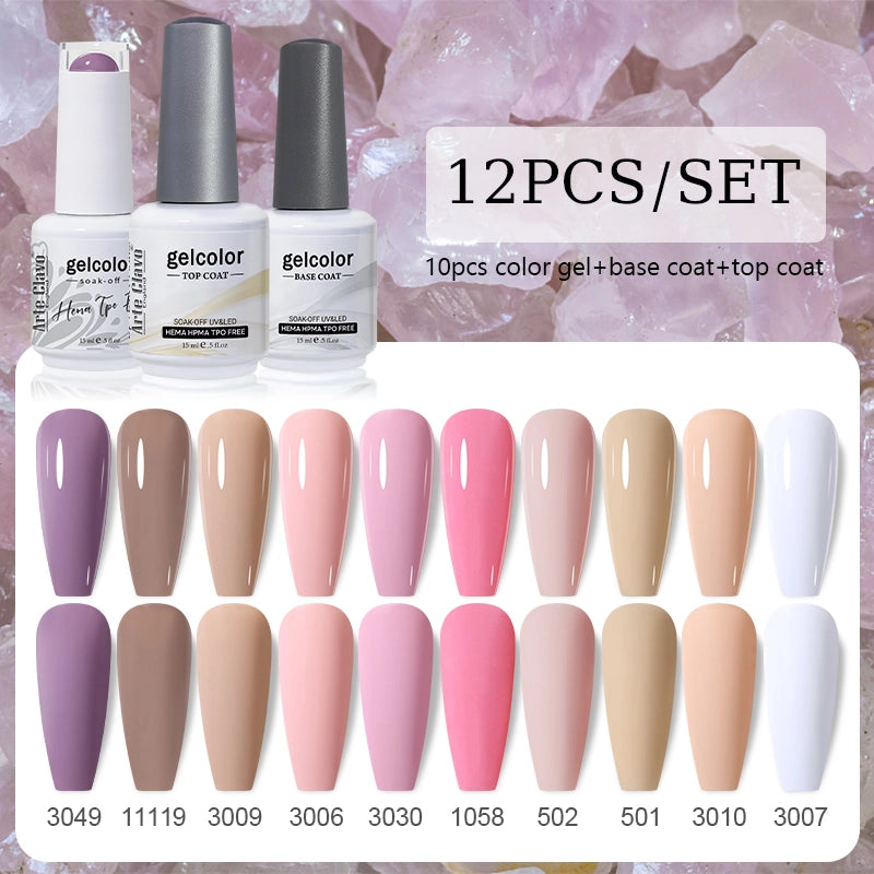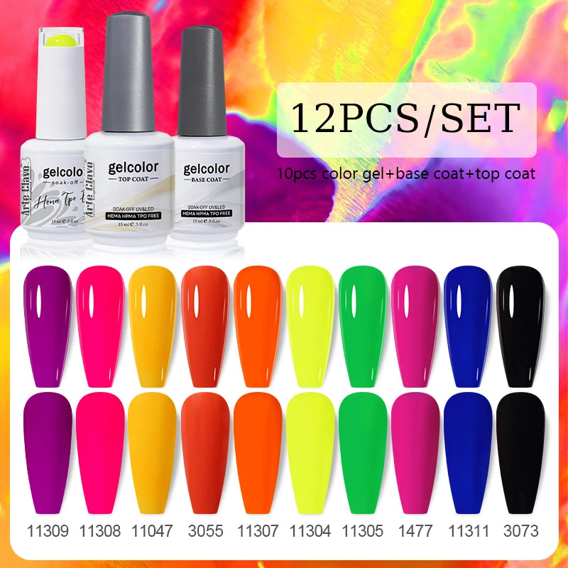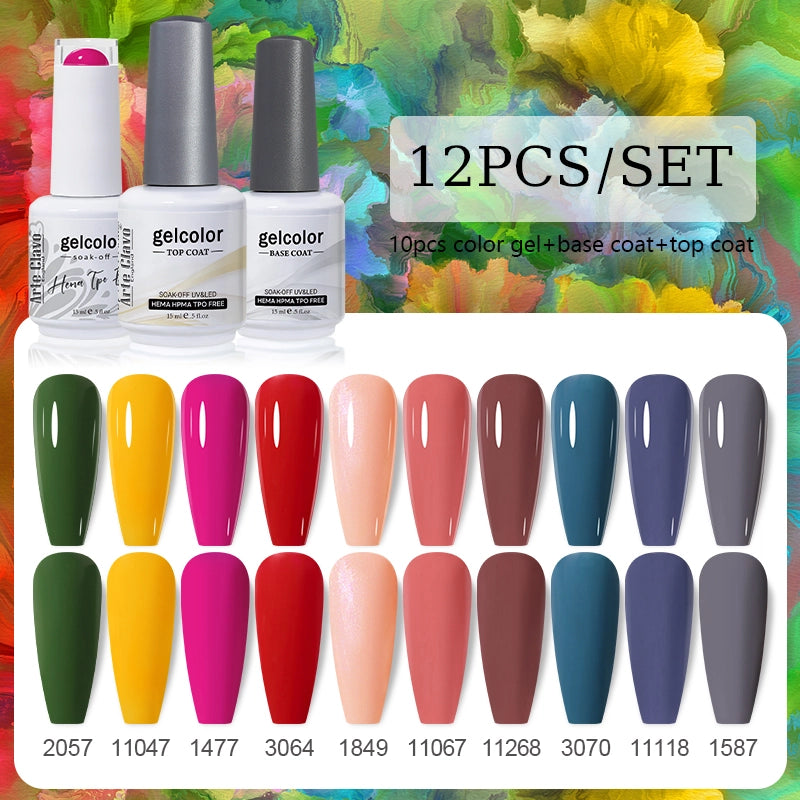 Arte Clavo 12-Piece Ultimate Gel Polish Collection (15ml) – 10 Colors + Base & Top Coat Kit