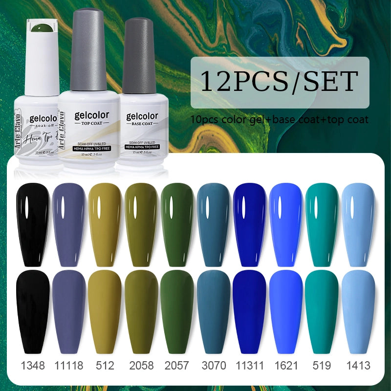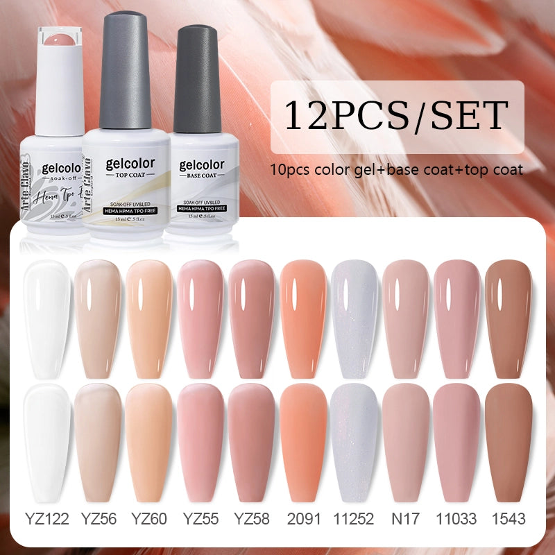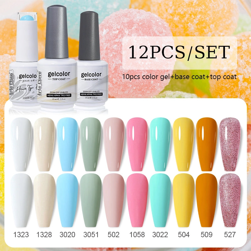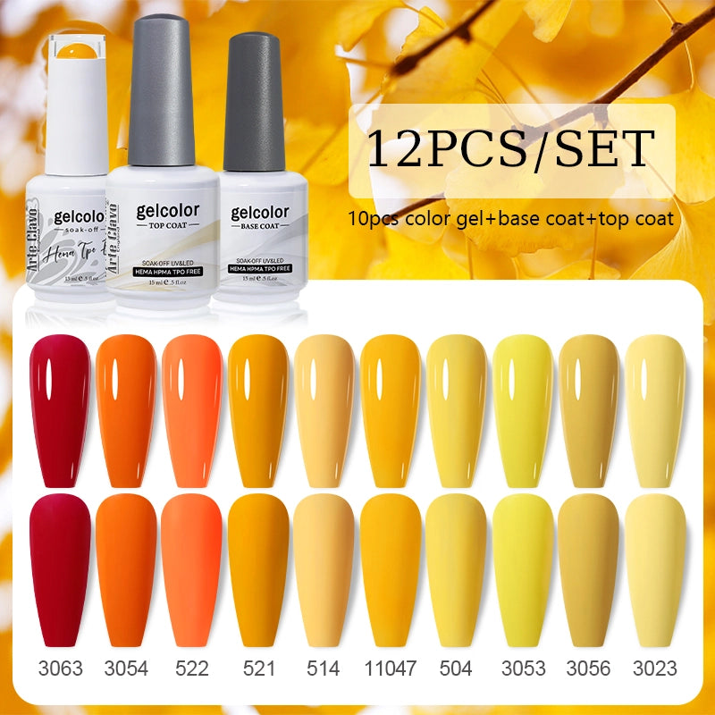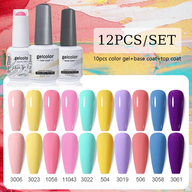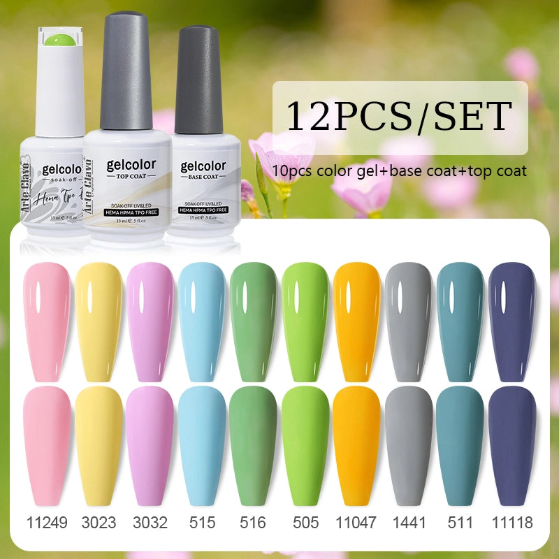 Arte Clavo 12-Piece Ultimate Gel Polish Collection (15ml) – 10 Colors + Base & Top Coat Kit