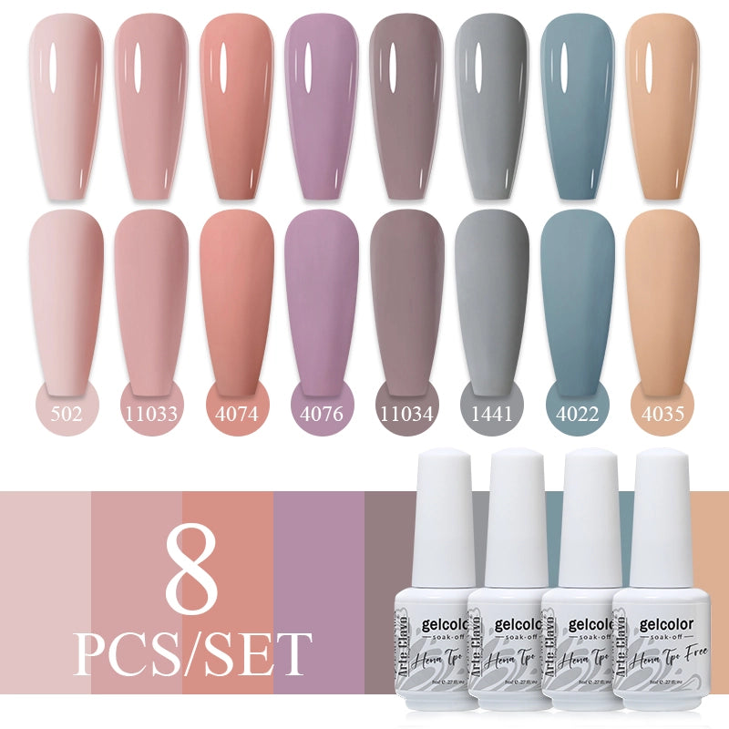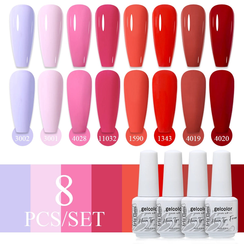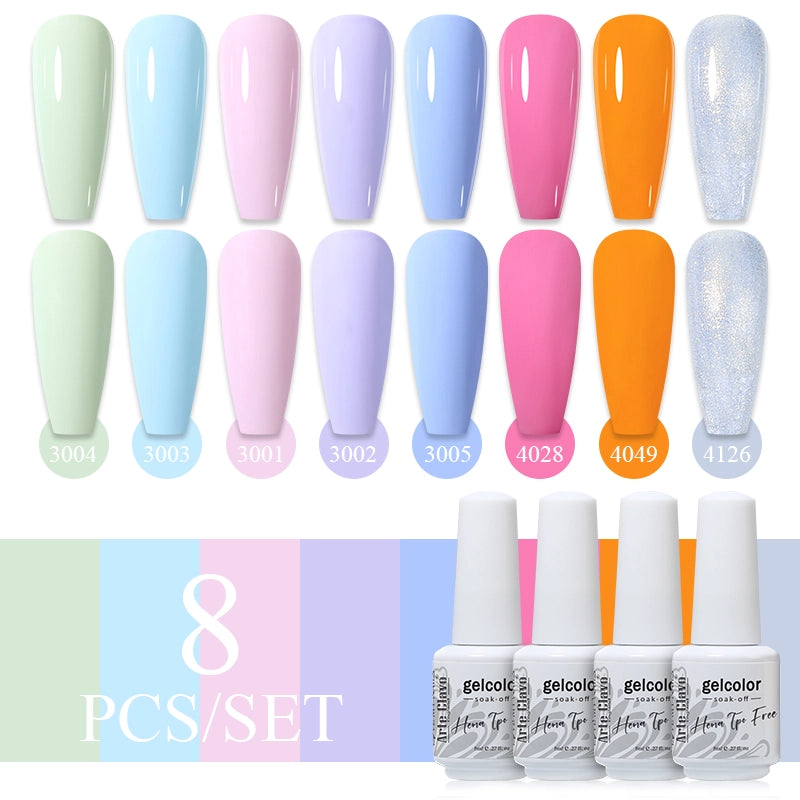 Arte Clavo 8-Piece Gel Nail Polish Set: Safe, Vibrant & HEMA-Free
