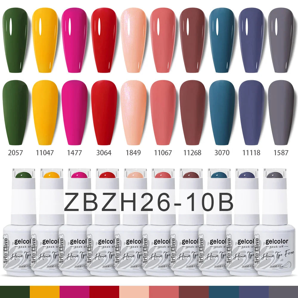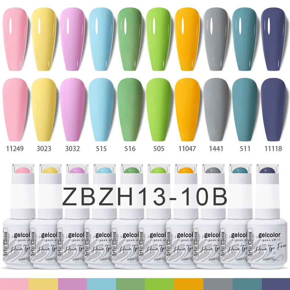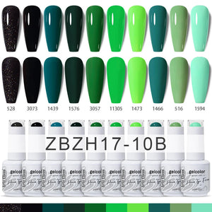 10 Bottles 15ml Colorful Gel Nail Polish (HEMA FREE & TPO FREE)