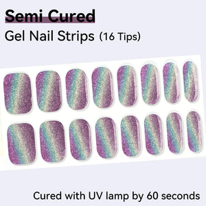 Mesmerizing Glow: Cat Eye Magnetic Effect Semi-Cured Gel Nail Strips (16 Tips)