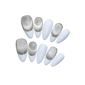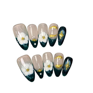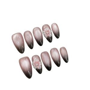 White Red Black French Tropical Flowers Camellia Cat Magnetic Effect Handmade Press On Nails Almond Detachable False Nails